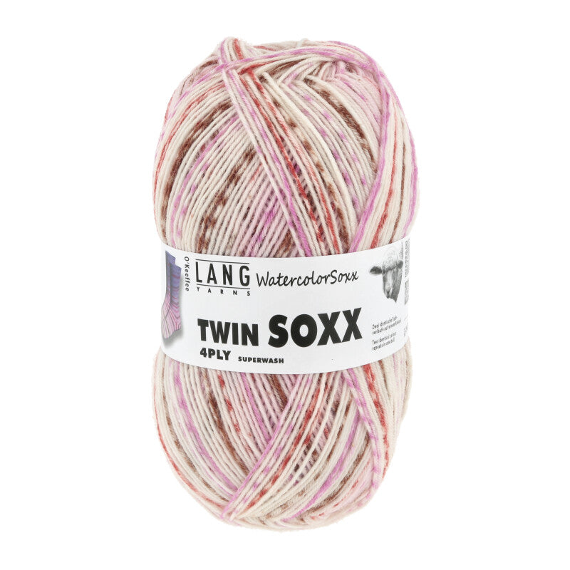 Les chaussettes jumelles avec deux dégradés de couleurs identiques dans une pelote. Commencez la première chaussette en prenant le fil par l‘intérieur de la pelote. Au bout de 200 m, vous trouverez une partie de fil non teintée. Coupez cette partie de fil. C‘est juste après que commence le même dégradé de couleurs pour la seconde chaussette. Bon travaux d‘aiguilles avec vos TWIN SOCKS!