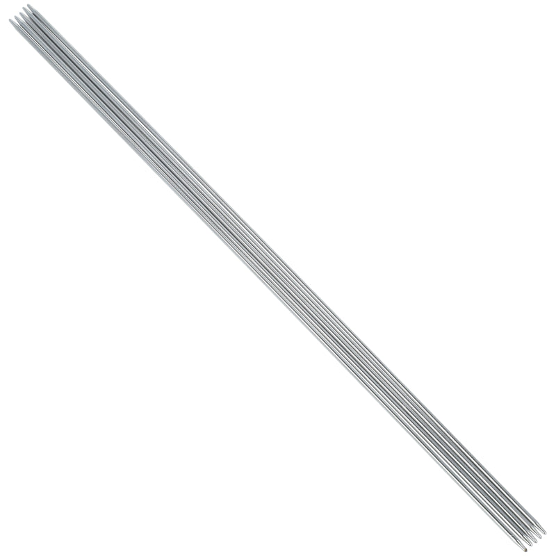 Cet ensemble d'aiguilles double pointe est fabriqué en acier traité en surface, ce qui les rend robustes, résistantes à la déformation et idéales pour un tricot détendu.